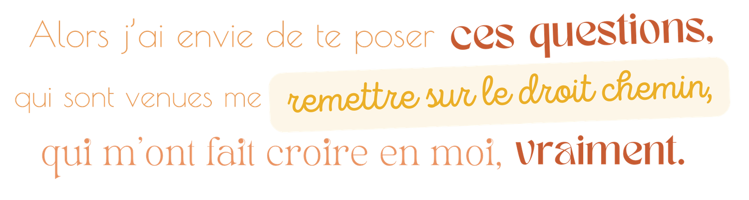 C'était clair, j'avais besoin de créer un chemin... MON chemin ! Celui qui me reconnecterai à mon principal besoin :créer des revenus récurrents dans mon entreprise pour me sentir libre d'être et de faire ce que je veux, et c’est ce dont on parlera dans la masterclasse, pour que toi aussi, concrètement, tu arrives à vendre tes produits ou services de manière éthique et intègre !!
