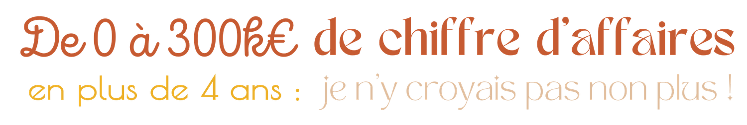 Aujourd'hui, en 2024, et après quatre ans, d'essais, de tests, pour moi et mes clientes, j'ai créé ma méthode dans laquelle je transmets tout ce qui m'a fait passé d'un CA de 0 à 5 chiffres en moins de 3 ans.